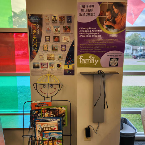 We have a rotating collection of games and activities on our tables, as well as tons of toys to play with, youth computers, a PS5, and AWE learning computers!